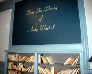 Diana Brooks, Katherine Myers, the museum's director of donor engagement, and Brian Walsh; Warhol's private book collection was recreated as he had them, with the spines facing in.
