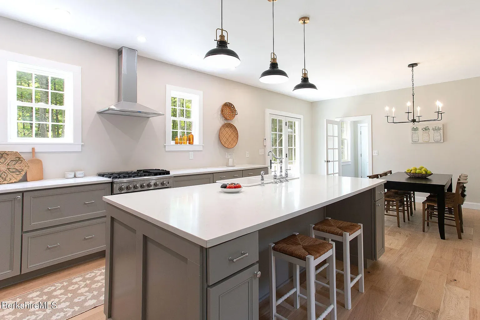 A refined new build at the quiet end of a country cul-de-sac. 60 Parsley Lane in Sheffield, MA blends fresh construction with classic Berkshire sensibilities: farmhouse architectural bones, warm finishes, and thoughtful spaces sited on about one acre of landscaped grounds near rolling hills and forest.