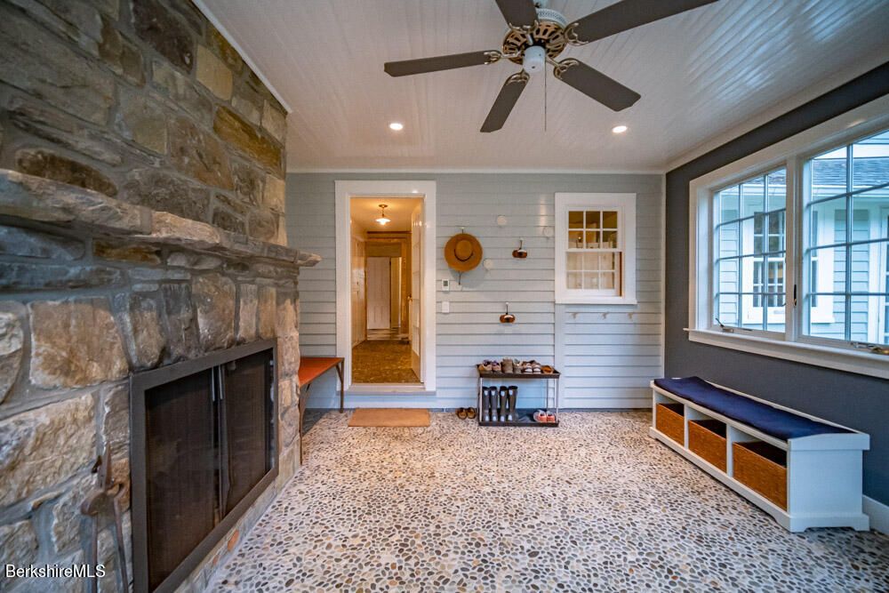 Stenciled wall decorations, historic wallpaper and painted floors keep this Southfield home, once the residence of The Whip Shop proprietors, loyal to its past. But it's been entirely renovated, and along with the three bedrooms and three bathrooms includes a new two-car garage, screened porch, potting room with soapstone garden sink, European style shower and many additional live/work spaces. Listed at $798,000 by Fairgrounds Real Estate.
