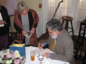 Valerie Dampeer, events committee member, Brian Lange, president of Wilderstein Historic Site, and Greg Sokaris, executive director; Donna Warner has her book signed by Ward.