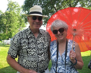 Rachel Louchen reports from Rhinebeck. Built in 1852, Wilderstein Historic Site is a Cape Anne-style mansion that, thanks to generous contributors and dedicated staff and volunteers, doesn’t look a day over 50. Those people and more gathered on the extensive lawns on Saturday, July 11th for the Summer Celebration benefit fundraiser. The former home of three generations of the Suckley family, most notably Margaret “Daisy" Suckley, a cousin of Franklin D. Roosevelt who opened the house to the public and created the Wilderstein Preservation in 1984. Daisy would be happy to see the care her beloved home has received over the years, including various restorations that are funded by events like these. A jazz band played while guests enjoyed cocktails and food, perused the silent auction and tried to narrow down which pie to bid on in the dessert auction. There were croquet matches, outdoor sculpture, gardens, trail and outdoor games, but many guests chose to simply enjoy the sights. Parasols, picnic blankets and pillows were scattered about the lawn so attendees could lie back, relax and enjoy the spectacular Hudson River views on this perfect cloudless day, much like Daisy would have. Above, Stan Sagner and Executive Director Greg Sokaris.