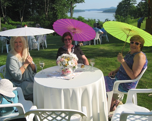 Patricia Heller, proprietor of a Mountain View Retreat in Germantown, board member Christine Foreace and Barbara Markell take advantage of the parasols.