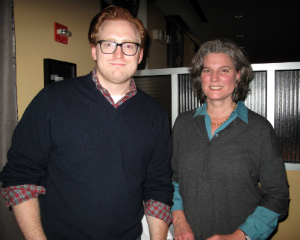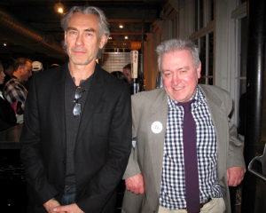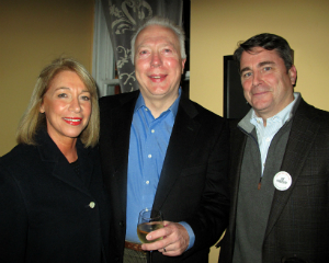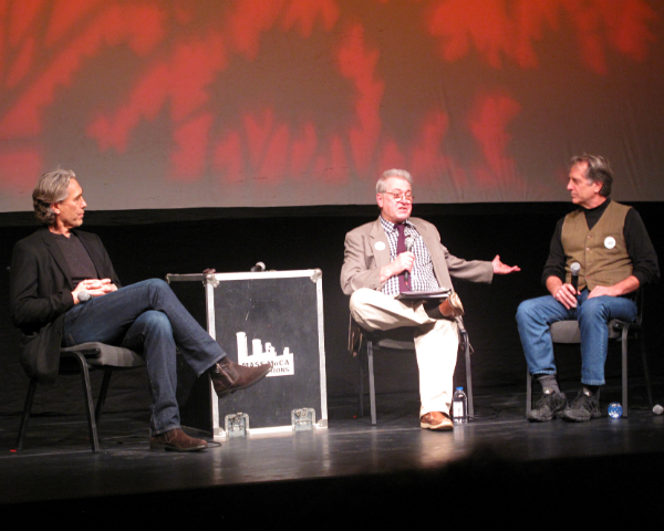 Amy Krzanik reports from North Adams. As part of its creative 2014 programming, the Williamstown Film Festival held a benefit dinner on Friday, November 7 at Gramercy Bistro, followed by a discussion with writer/director Tony Gilroy on “The Art of Suspense." The Festival’s Executive Director, Steve Lawson, and board member Stephen Hannock moderated the discussion, which was held in MASS MoCA’s Hunter Center. Gilroy is most famous for writing the scripts of the Bourne movies starring Matt Damon, and received an Academy Award nomination for writing and directing Michael Clayton starring George Clooney -- the film received seven nominations in all. Clips of Gilroy’s films, including the recently released Nightcrawler which he produced, and other thrillers were interspersed to give the audience examples of how filmmakers keep moviegoers on the edges of their seats. Lickety Split hosted an after-party in the lobby, and guests were treated to hors d’oeuvres and dessert, including pistol-shaped sugar cookies in a “blood-spattered" bowl. Above: Tony Gilroy and his wife, Susan Gilroy, flank Stephen Hannock.