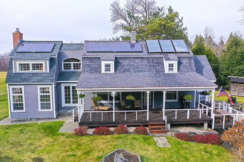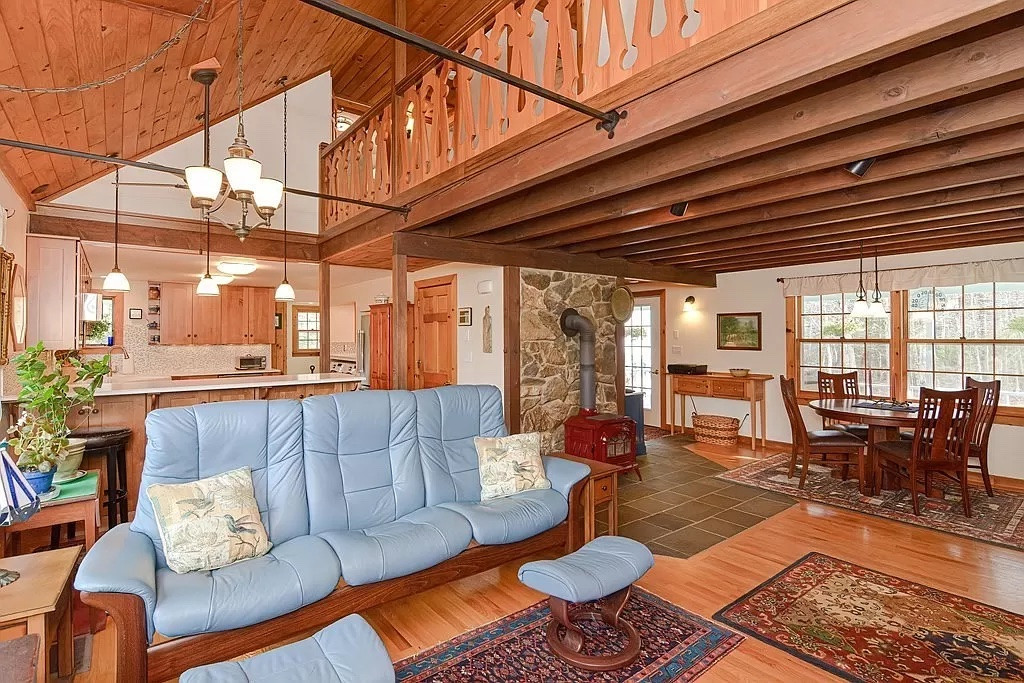 In Windsor, a modern country home features a farmer's porch, an updated kitchen, gas fireplace and pellet stove. There are five bedrooms and two updated bathrooms (one with a copper soaking tub). The barn includes a horse stall, water, and storage for equipment. Also on the property, a separate checken coop plus a three-car garage with a workshop. Listed at $599,900 by Fisher And Associates.