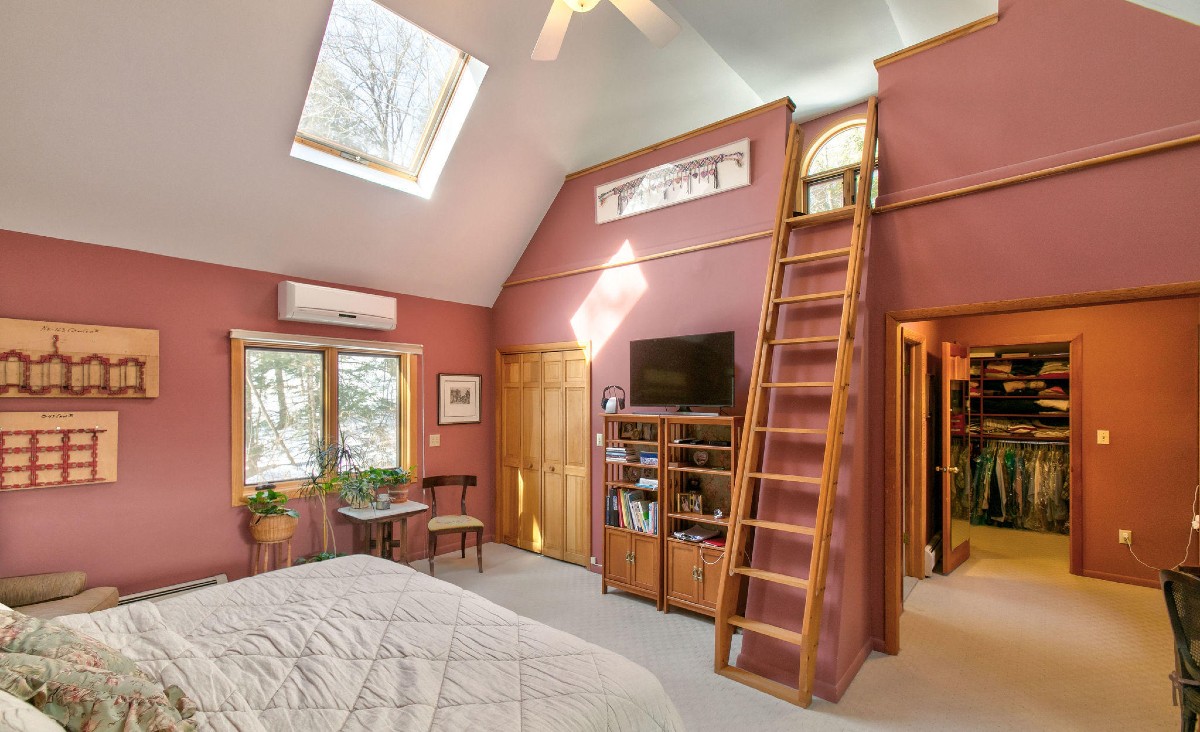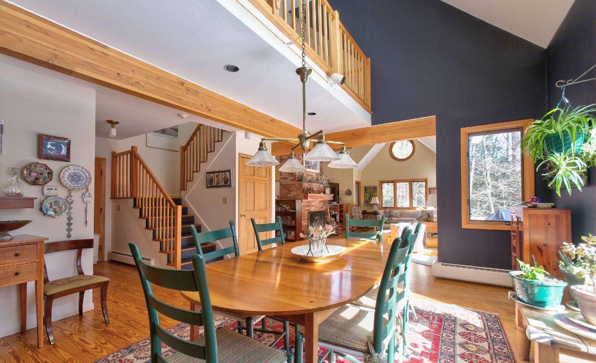 Built in 1987, this West Stockbridge contemporary home has four bedrooms and four bathrooms. The luurious master suite features updated bathrooms, a dressing room, walk-in closet, and its own loft. The first floor also holds the large kitchen, living room, office/library and first-floor guestroom. Outside, there's a pool, multiple decks, screened porch, and woodland garden. Listed at $850,000 by Lance Vermeulen Real Estate, Inc.