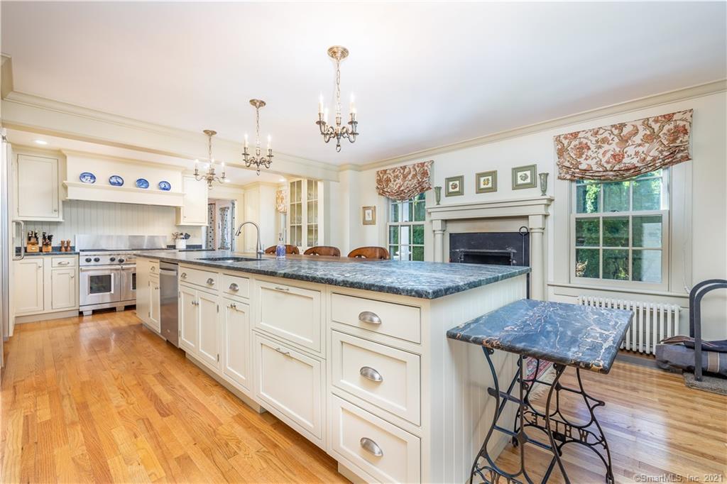 Litchfield's picturesque South Street is the location for Woodruff House, built in 1855 for George Morris Woodruff, a well-known resident of the town. The 5,448-square-feet of living space includes a formal entrance, living and dining rooms, den, kitchen, family room, laundry, mudroom and office. There's a grand staircase up to the five bedrooms, and there are five bathrooms in total. The property also includes a heated pool, an elevator and a heated barn. Listed at $1,750,000 by William Pitt Sotheby's International Realty.