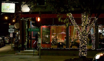 Yum Yum Noodle Bar7496 S. Broadway, Red Hook, NY (845) 835-6383 Open every day 11:30 a.m.-10 p.m. We’ve sampled Yum Yum’s dishes many times over the years from its food truck, which pops up at events across the region, but now that Yum Yum is in Red Hook, the full menu and hip atmosphere that’s made it so successful at the Woodstock and Kingston locations is all ours. The space is warm and inviting, with Yum Yum’s trademark raw wood bench seating and purple and green floral design. The window-lined walls draw you into the space, and once you're in make for excellent viewing of the bustling town as you warm yourself with a bowl of noodles, dumplings and inspired signature cocktails. Even though this is the third Yum Yum (fourth if you count the truck), for owners Nicole Cawley and Erica Mahlkuch, there isn’t the slightest whiff of stale franchise. The space feels vibrant and part of the community already.